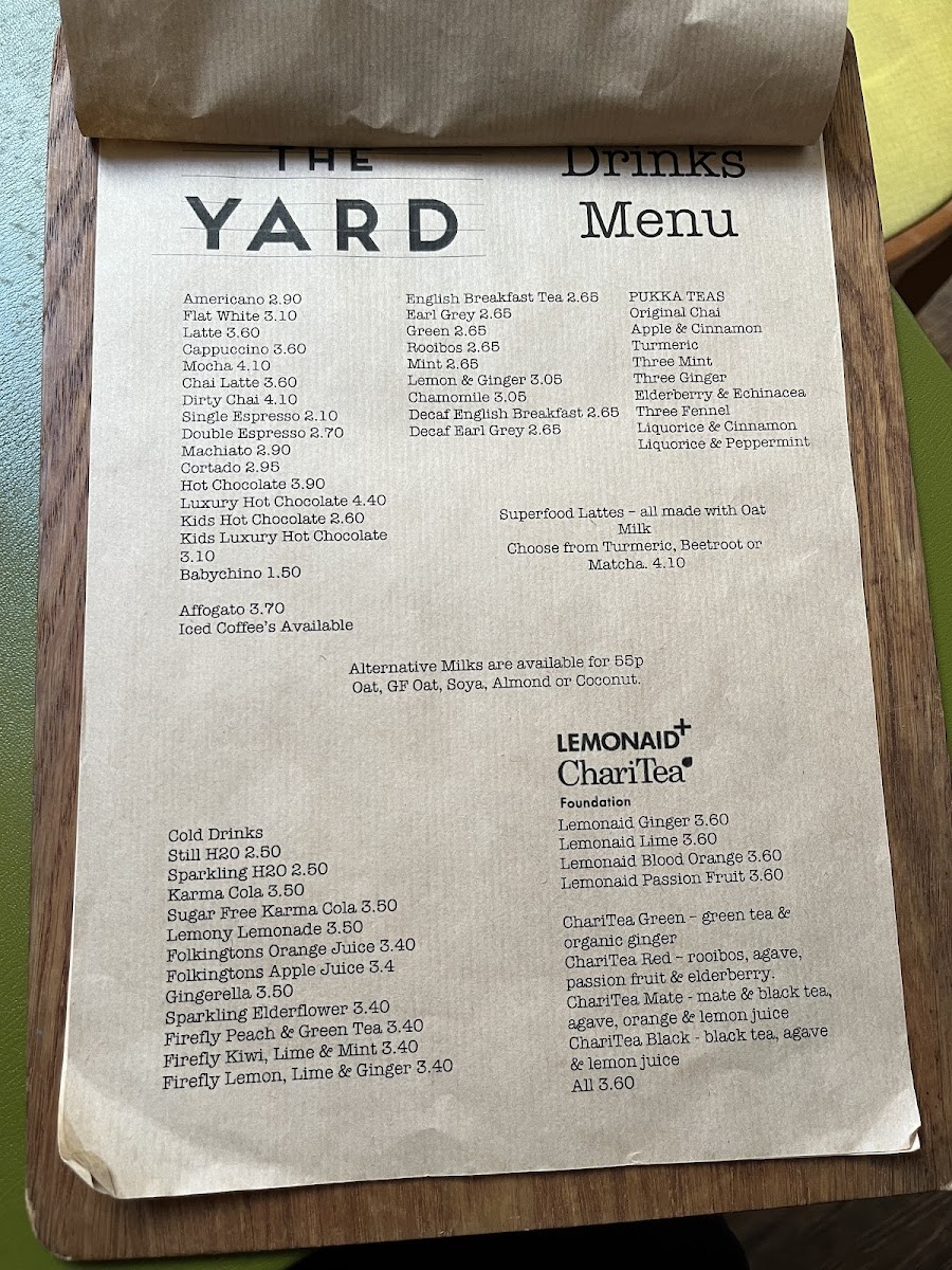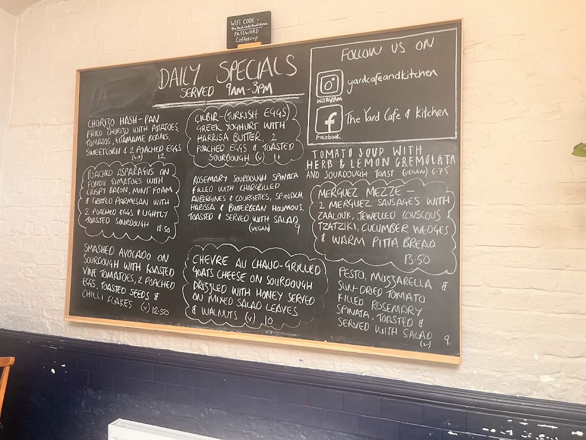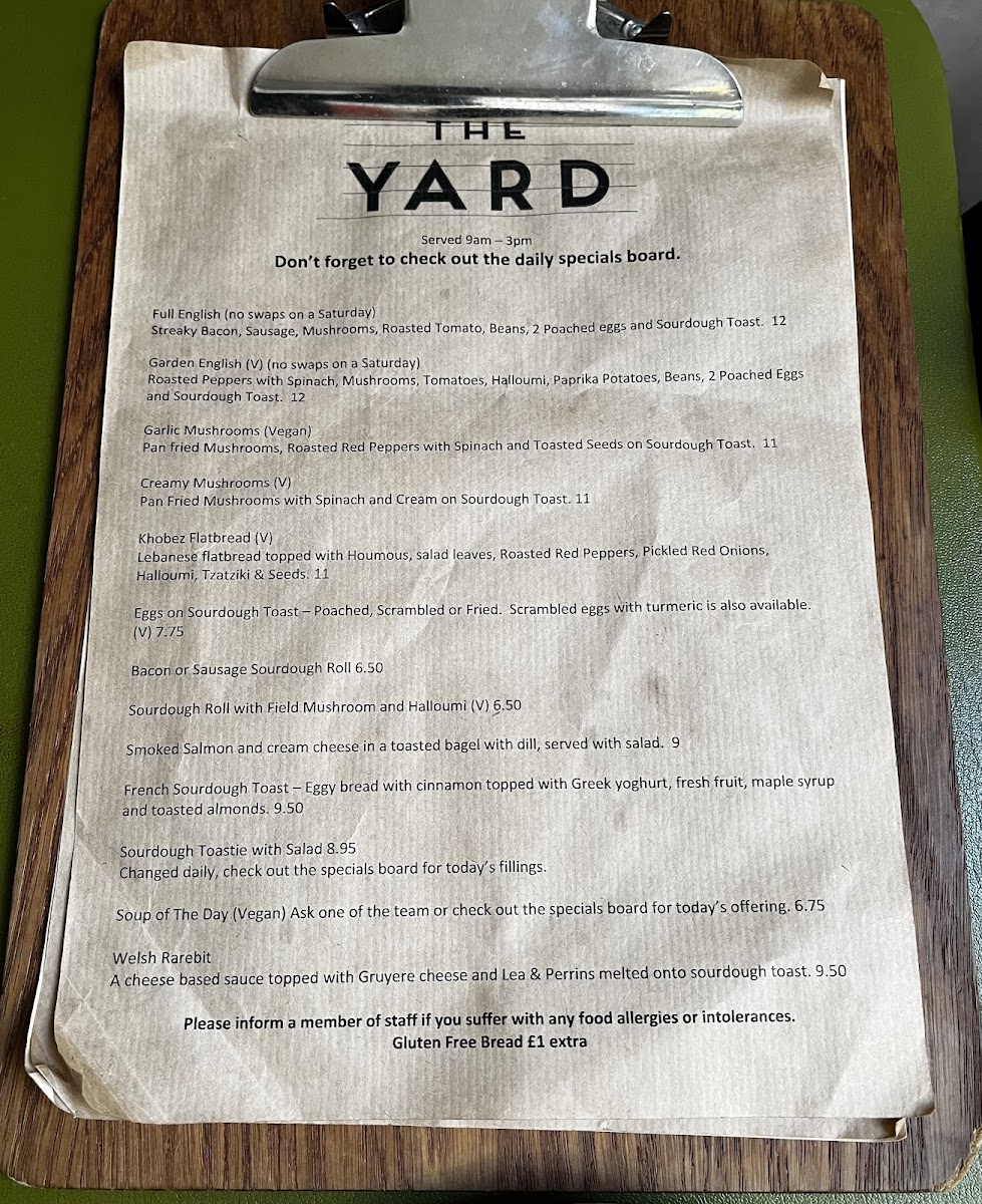 Yard Cafe and Kitchen Ltd Menu